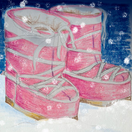 Die Gattin von Sergei trägt die unvermeidlichen Moonboots, die in Aspen so en vogue sind. In PINK! Als Gegenpol zu den klobigen Tretern ist die Hose extrem figurbetont geschnitten.