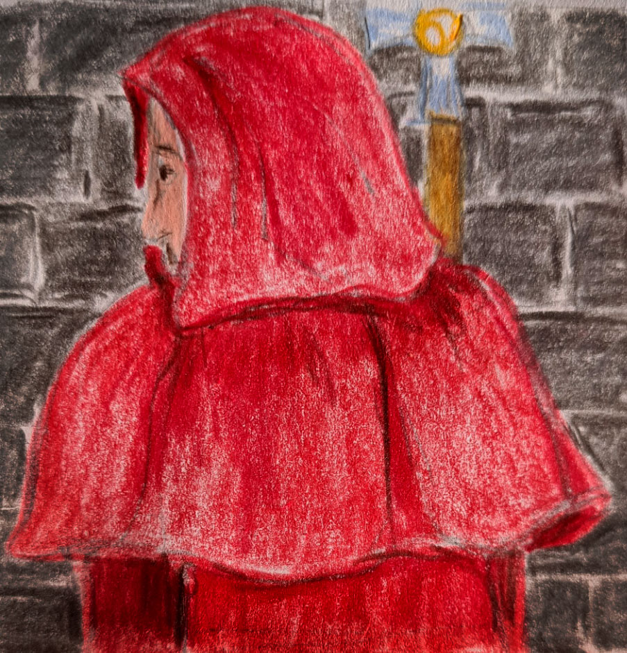 Der/die Inquisitor/in sieht zu jeder Tag und Nachtzeit so aus, als hätte er/sie Zahnschmerzen. Dabei sieht diese blutrote Kutte doch wirklich bequem aus. Muss am Job liegen!