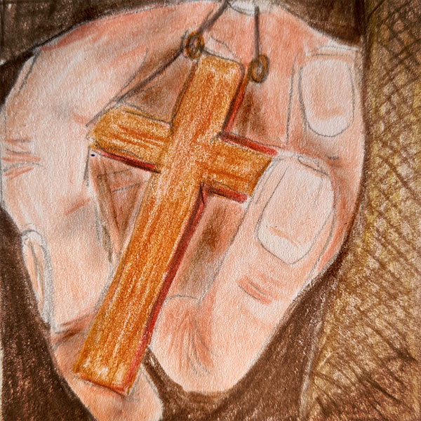 Der Franziskanermönch ist eher unauffällig in seine braune Mönchskutte gekleidet. Nur mit dem Holzkreuz – sein einziges modisches Accessoire – wird ständig wichtig herumgefuchtelt.