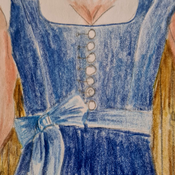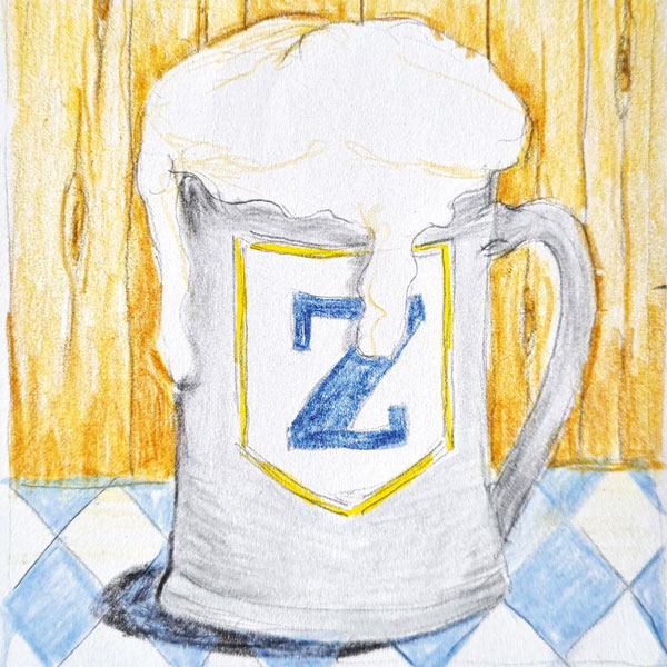 Der/die Kellnerin hat bei der Wahl des Outfits sich an die Vorschriften der Brauerei Zapfenkeller zu halten: Lederhose für Männer, Dirndl für Frauen, und ein blau-weißes Halstuch.
