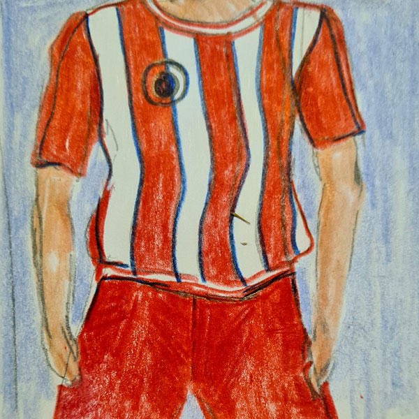 Der Platzwart ist ein bodenständiger Mann und seinem Verein auch nach Feierabend treu. Natürlich kommt da nur das Vereinstrikot des BSV Bayern 03 als Klamotte in Frage.